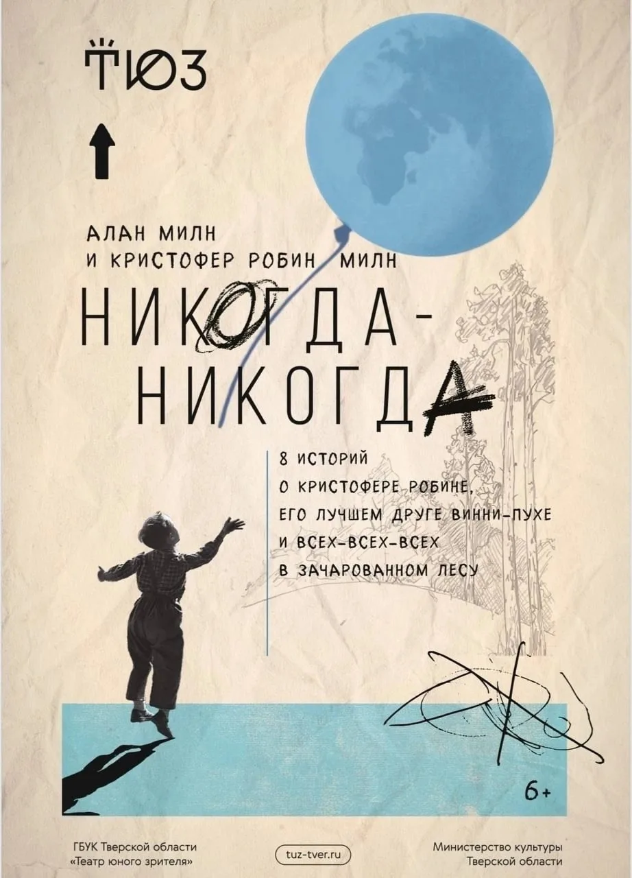 Для маленьких любителей постановок – спектакль «Никогда-Никогда» (6+) в Тверском театре юного зрителя. Это история о повзрослевшем Кристофере Робине, который возвращается в детство в поисках радости, где его ждут старые, но все еще любимые игрушки: Винни-Пух, Пятачок, Кенга и ее крошка Ру, Ослик Иа-Иа, Кролик, Тигра и Сова.